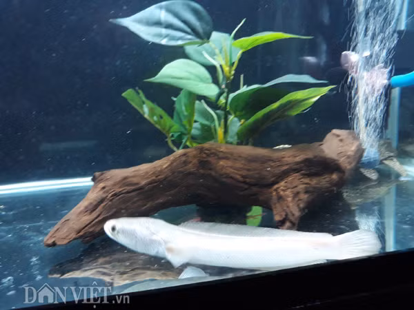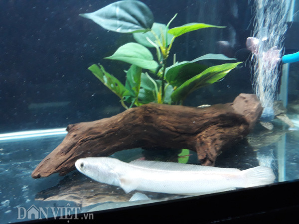 | Cận cảnh một con cá lóc bạch kim mới được anh Ken đưa về Việt Nam. |