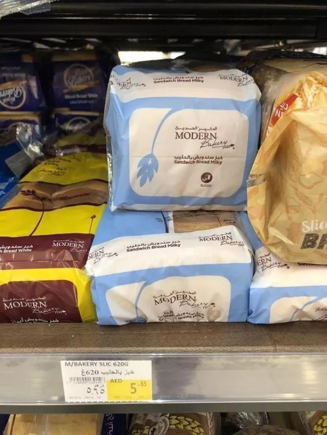Siêu thị Dubai cũng có bán bánh mỳ cắt lát sẵn với giá 5,65 AED (35.000 đồng) cho 1 gói bánh 630g.