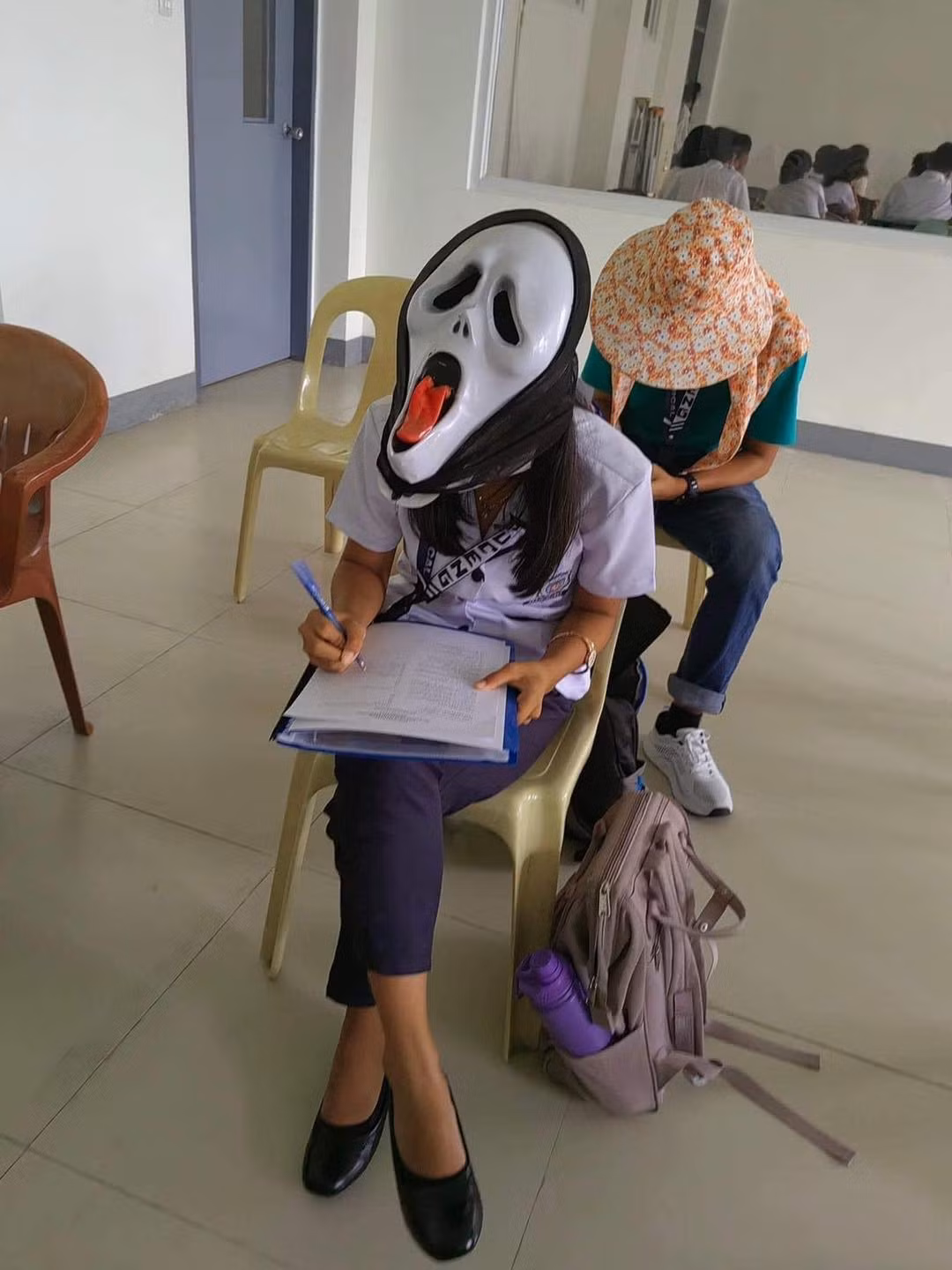 Lớp học bất ngờ trở thành sàn diễn hóa trang Halloween mặc dù chưa đến đúng ngày. Ảnh: Mary Joy Mandane-Ortiz