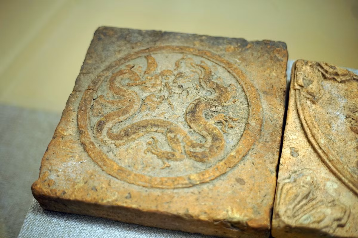 Gạch lát nền trang trí hình rồng thời Lê Trung Hưng, thế kỷ 17-18. Ảnh: Quốc Lê.