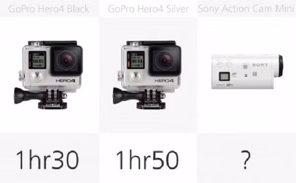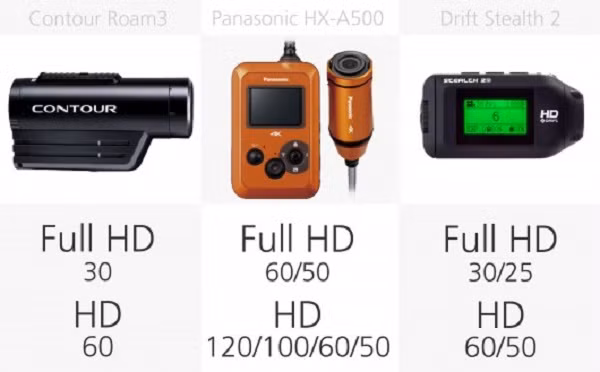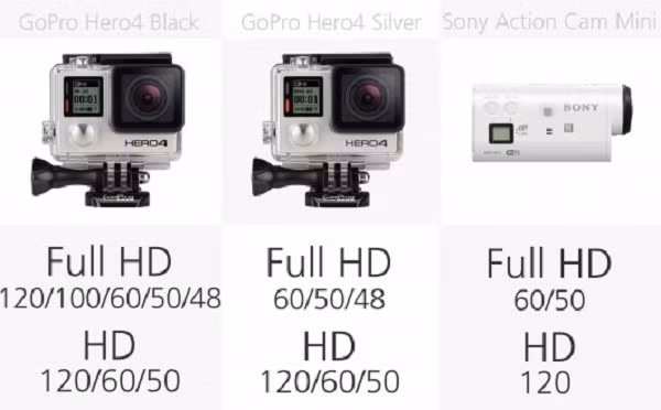 Có video Full HD 1080p trên diện rộng, đa số các máy ảnh hành động có thể làm điều này với kính 60 fps. GoPro Hero4 Đen là máy ảnh duy nhất ở đây có khả năng Full HD tại 120/100 fps cho việc tạo ra đoạn phim quay chậm.