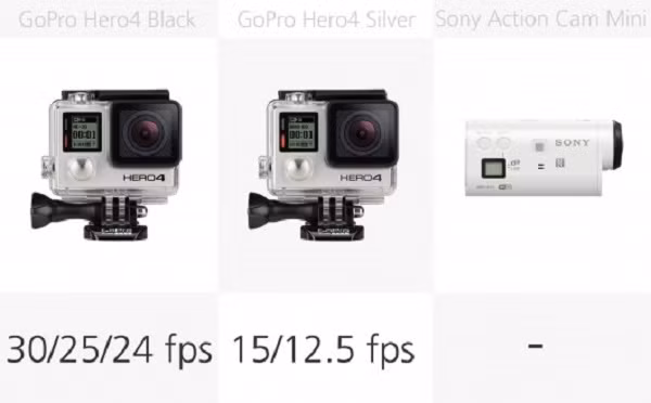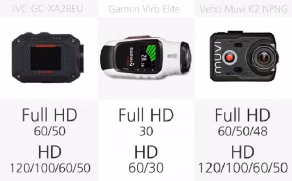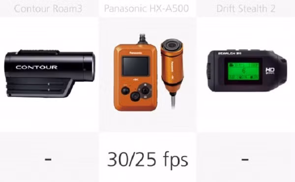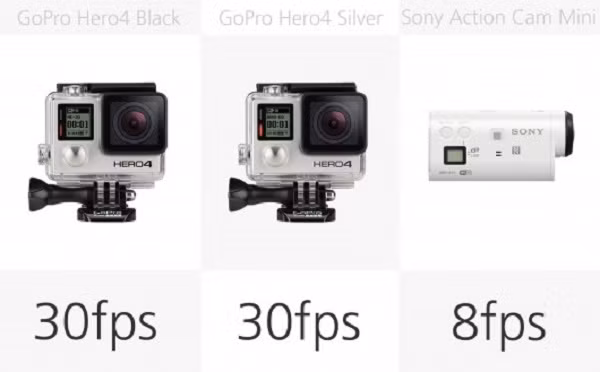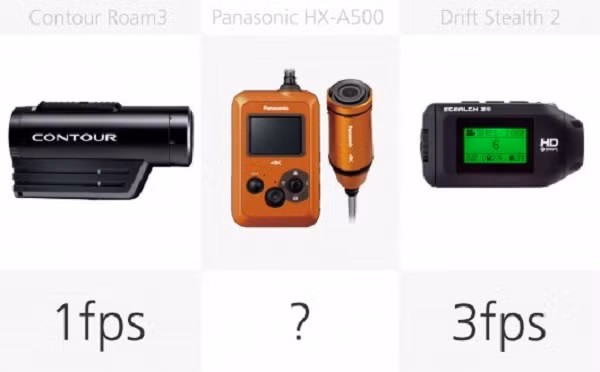 Về vấn đề này, máy ảnh GoPro Hero4 khá nổi bật, nhờ chụp 30 fps. Các máy ảnh nhanh nhất tiếp theo là JVC GC-XA2, một nửa tốc độ, 15 fps.