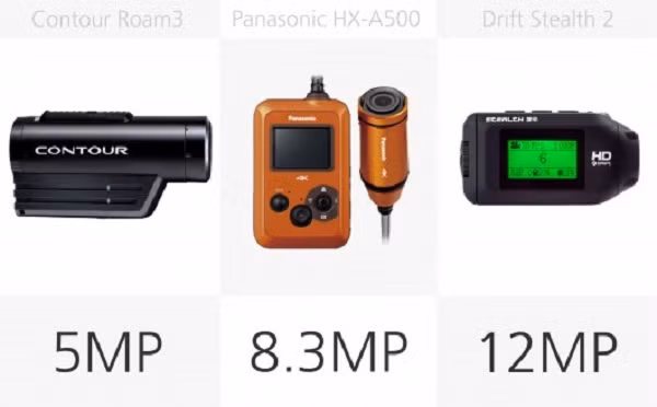 Trong 9 sản phẩm này, chúng tôi đã có ba 4K shooters. Trong khi GoPro Hero4 bạc được giới hạn đến 15/12,5 fps, cả GoPro Hero4 Đen và Panasonic HX-A500 có thể hơn 30/25 fps.