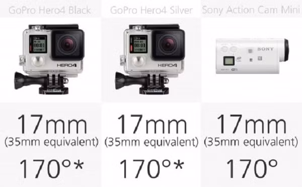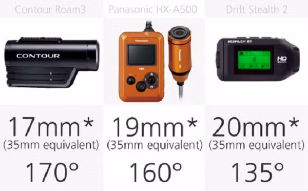 Một trường nhìn rộng rất quan trọng cho máy ảnh hành động. Những chiếc máy ảnh với trường nhìn rộng nhất là GoPro Hero4, Sony Action Cam Mini và Roam3 Contour trường nhìn với 17mm nhưng tương đương với ống kính 170 độ.