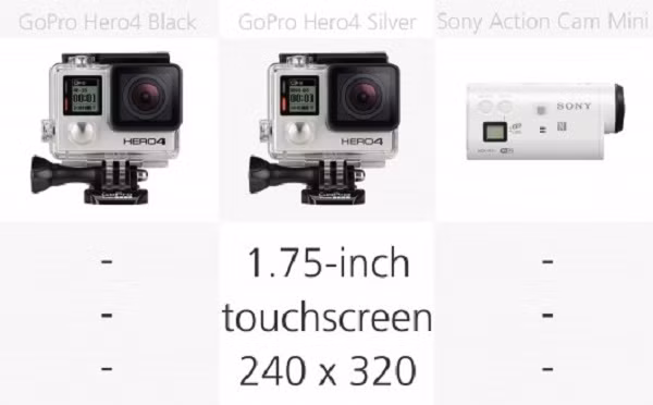 Các máy ảnh hành động được xem xét là: