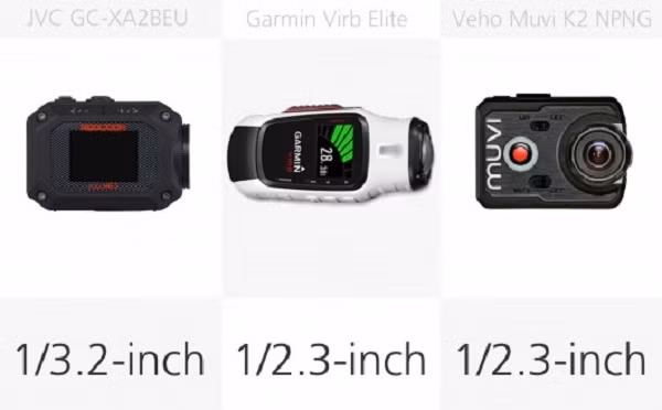 Với kích thước nhỏ của máy ảnh hành động, chúng ta không ngạc nhiên khi các máy ảnh sử dụng các cảm biến trong khoảng từ 1/3.2-inch đến 1/2.3-inch.
