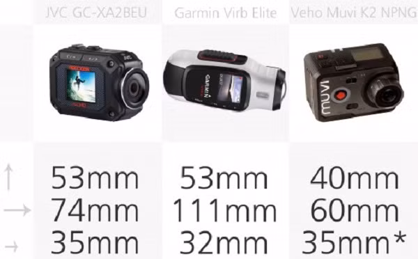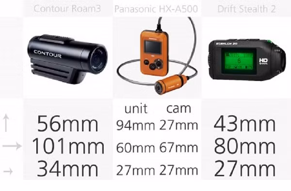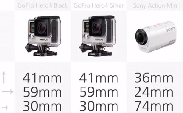 Như bạn có thể thấy từ bảng so sánh này, máy ảnh hành động có nhiều hình dạng và kích cỡ. Điều này là rất tốt cho người tiêu dùng vì nó có nghĩa là bạn có thể mua một máy ảnh phù hợp nhất với kế hoạch sử dụng của mình. Đây là kích thước nguyên thủy của máy ảnh, khi chưa được gắn thêm các phụ kiện bổ sung. Bạn cũng nên xem xét việc bạn sẽ gắn những phụ kiện gì, vì điều đó sẽ thay đổi kích cỡ của máy ảnh.