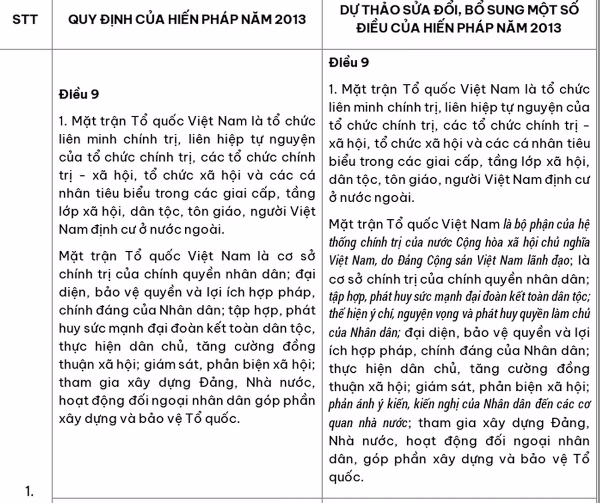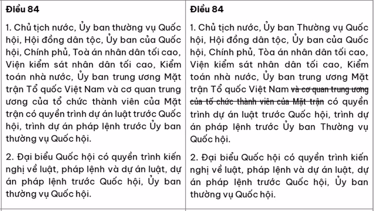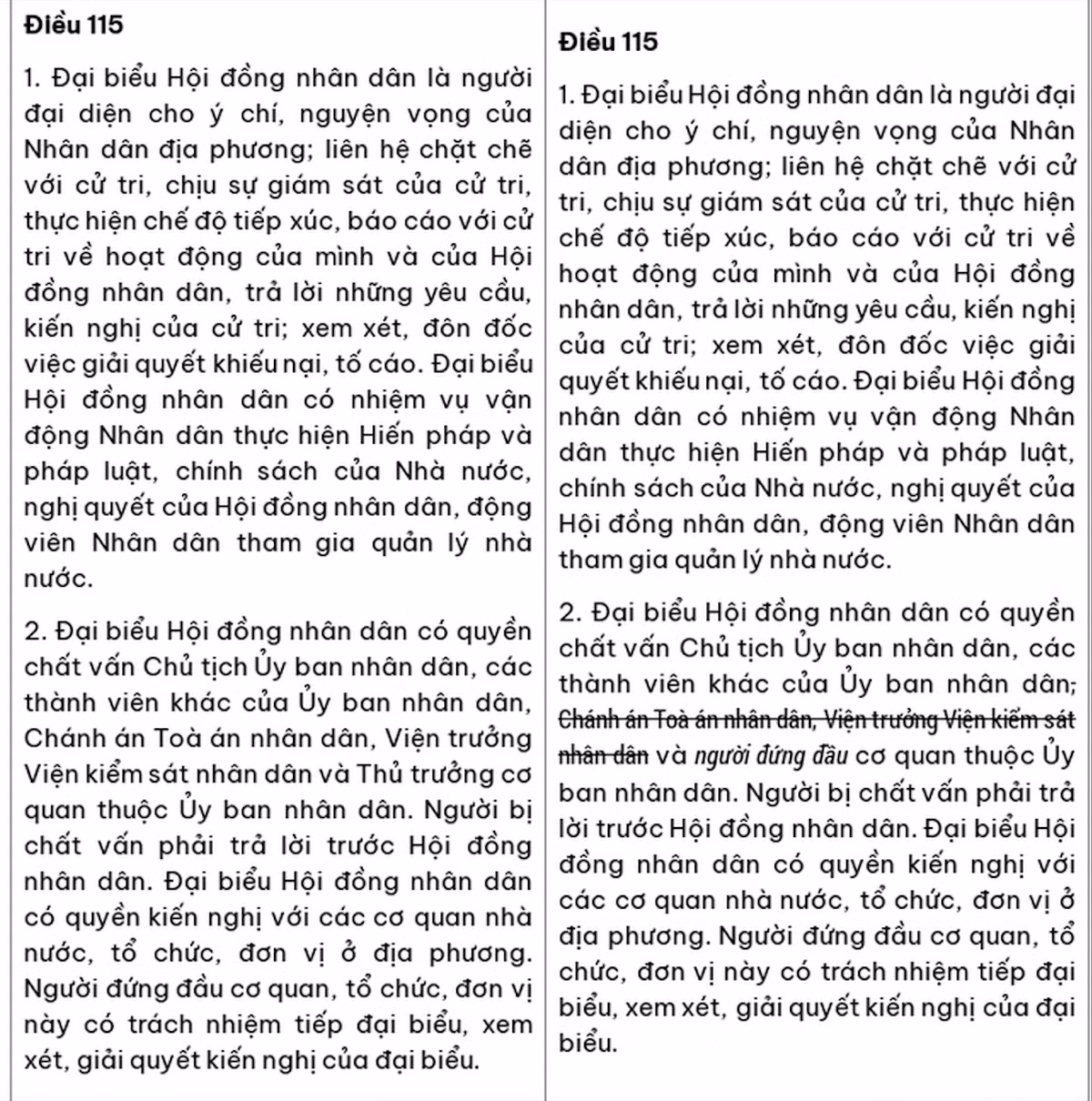 So sánh các nội dung dự kiến sửa đổi, bổ sung một số điều của Hiến pháp năm 2013