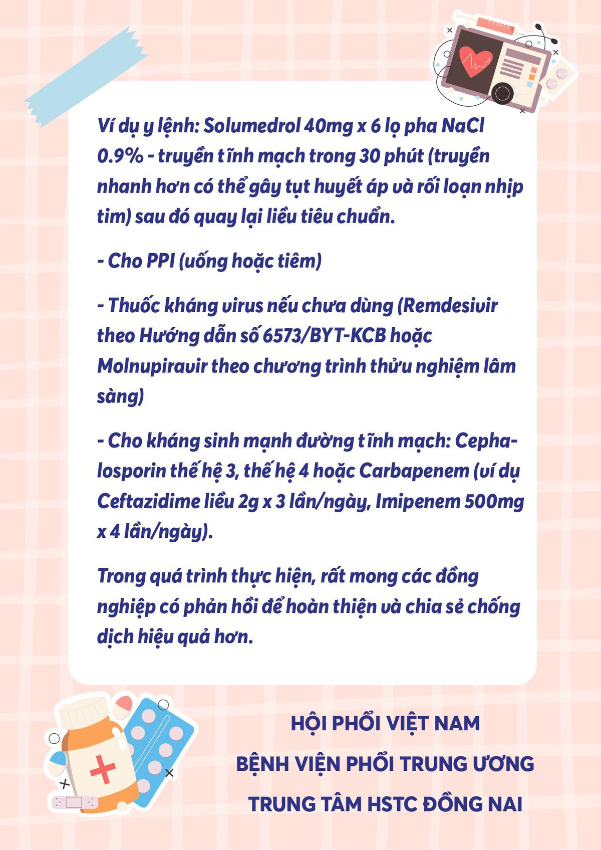 (Kiến Thức) - BV Phổi Trung ương, Trung tâm Hồi sức tích cực tại Đồng Nai thuộc BV Phổi Trung ương, Hội phổi Việt Nam đã xây dựng sổ tay điều trị COVID-19 cho những đối tượng là F0 nhẹ và không triệu chứng.