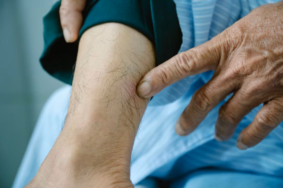 Vết thương kiến ba khoang cắn vẫn còn đỏ sau 5 ngày điều trị/Ảnh bvtwqn.vn