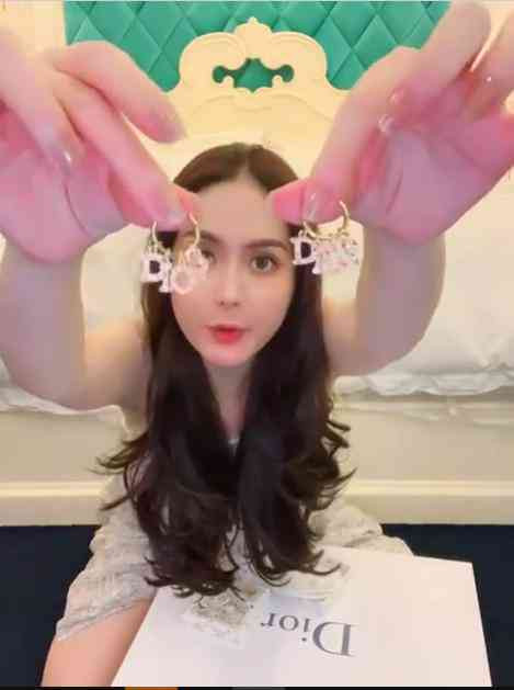 Đầu tiên, cô chọn "đập hộp" đôi hoa tai hàng hiệu đến từ nhà mốt Dior. Đoàn Di Băng không nhớ giá chính xác, nhưng ước tính đôi hoa tai này có giá khoảng 10 đến hơn 20 triệu đồng.