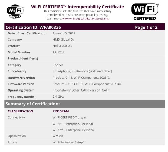 Với sự kiện MWC 2020 đến gần, chúng ta có thể thấy nhiều thông tin hơn về Nokia 400 TA-1028 trong tương lai.
