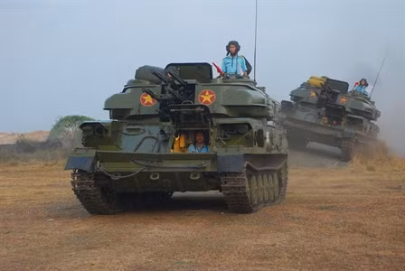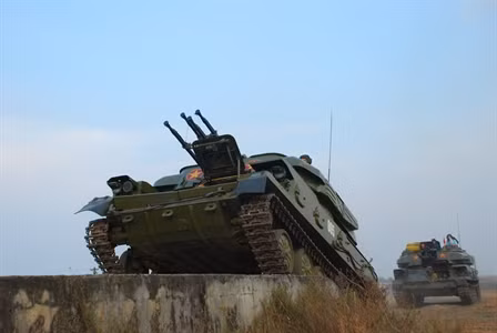Pháo phòng không tự hành Zsu-23-4 thực hành các bài huấn luyện.