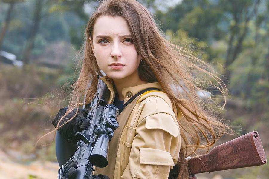 Elena Deligioz (SN 1996) được mệnh danh "thiên thần quân đội" nước Nga. Khoác lên mình những trang phục chiến binh cực “ngầu”, cô nàng khiến nhiều người tưởng rằng cô là một quân nhân chuyên nghiệp.