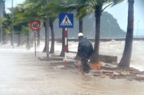 Một đoạn kè biển dài hơn 10 mét đã bị sóng đánh vỡ, nước biển đã tràn qua kè làm ngập đoạn đường dài 200 mét từ cổng trụ sở UBND TP Hạ Long đến khu vực Cục hải quan tỉnh. Nước ngập sâu đã khiến việc đi lại của người dân tại khu vực này gặp rất nhiều khó khăn.