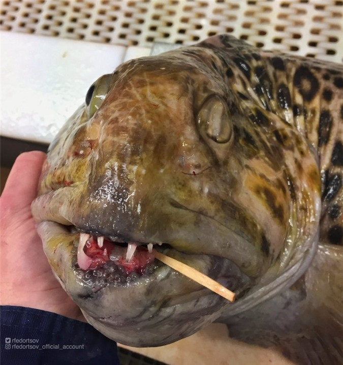 Hiện tài khoản Twitter cá nhân của Roman Fedorstov có hơn 146 nghìn người theo dõi. Trong khi đó, tài khoảnInstagram sở hữu hơn 420 nghìn người theo dõi. Những con "quái vật" anh ghi lại được thường có khuôn mặt dị hợm, kì dị, cá có răng, cá một mắt, thậm chí sinh vật dị dạng chưa được đặt tên. Ảnh: Một quái ngư với bộ răng cứng, khỏe