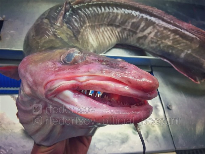 Đại dương bao la luôn ẩn chứa những điều bí ẩn mà cho tới nay khoa học tiến bộ cũng chưa thể lí giải hết được. Roman Fedorstov, ngư dân Nga làm việc trên tàu đánh cá có trụ sở tại Murmansk, phía tây bắc nước Nga. Anh chia sẻ hình ảnh về những quái vật ghê rợn, không thể tin nổi tồn tại trên Trái Đất trên trang Twitter và Instagram cá nhân. Rất nhanh chóng, những bức ảnh độc lạ của anh thu hút sự chú ý của cư dân mạng. Ảnh: Con cá lạ có "cái lưỡi" to bất thường