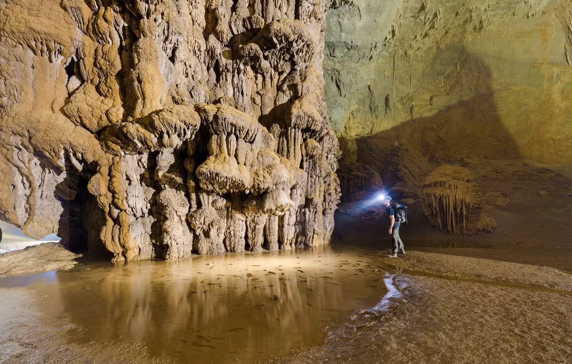 Khi bật ánh đèn trong hang Sơn Đoòng, ngay lập tức độc giả có thể quan sát thấy một động cao tới 50m với những khối thạch nhũ nguyên sơ, được hình thành từ cách đây hàng triệu năm, đẹp đến nín thở.