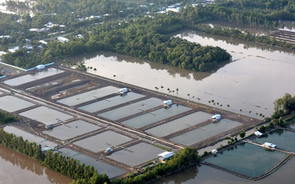 Những vuông tôm, ao nuôi thủy sản vuông vắn trông như một bàn cờ.
