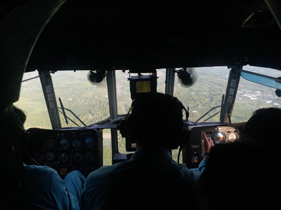 Đồng bằng sông Cửu Long hiện ra trên kính khoang lái và cửa sổ trực thăng Mi-8.