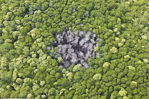 Một cụm cây khô trắng vì bị sét đánh trúng giữa các tán cây xanh trong một khu rừng thuộc bang Queensland, Australia