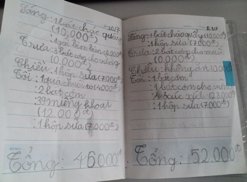 Mới đây, trên một diễn đàn giải trí dành cho giới trẻ có chia sẻ loạt ảnh chụp lại cuốn nhật ký ăn uống của một cậu bé 8 tuổi với dòng status: "Mới 8 tuổi thôi nhưng em đã biết tính toán, ăn uống siêu tiết kiệm nhé cả nhà, có bé nào được như em không?".