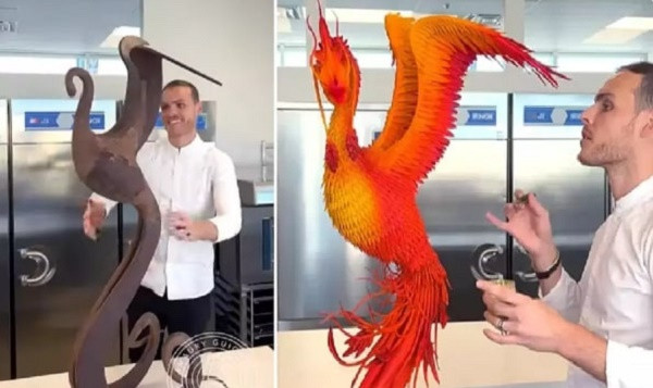 Khéo léo tạo phượng hoàng lửa bằng socola gây sốt.
