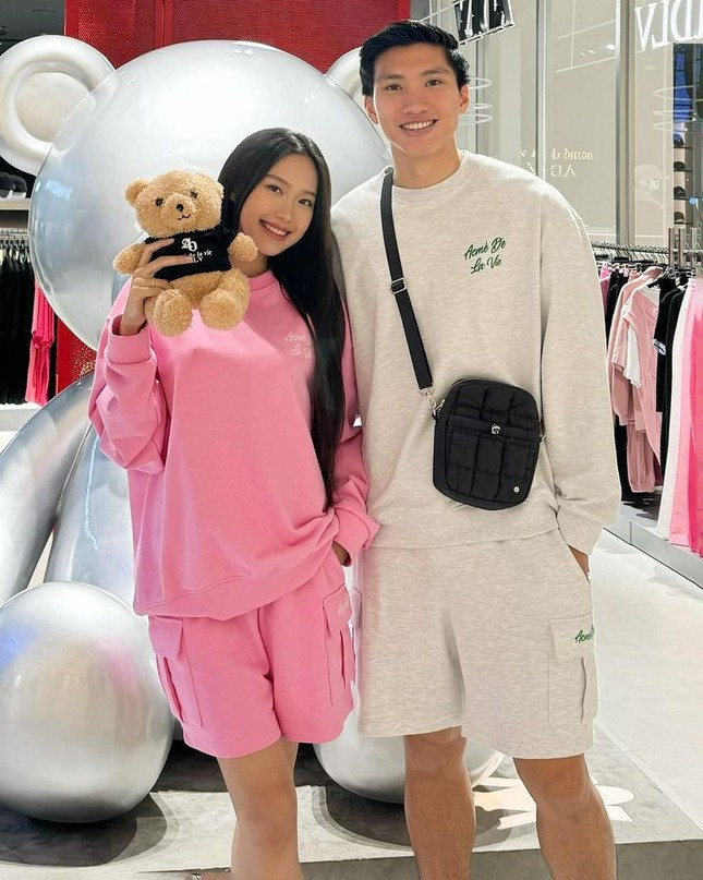 Hai vợ chồng còn rất đồng điệu với những set đồ thể thao rộng rãi, thoải mái. Trước khi kết hôn, mọi người ít thấy Doãn Hải My lựa chọn style thể thao đơn giản như thế này, nhưng giờ thì cô rất hào hứng diện đồ đôi với chồng.