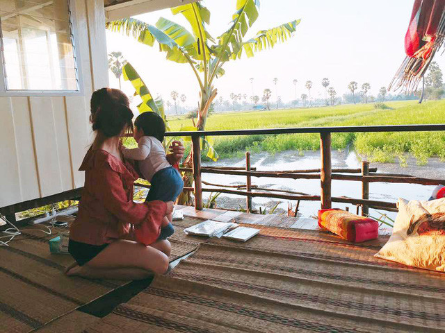 Bức ảnh người vợ đang ngồi ôm con nhỏ - có lẽ là đang đợi chồng, mắt nhìn về cánh đồng mênh mông xanh ngát phía xa càng khiến cho những người xem ao ước được đến đây tận hưởng không gian đồng quê một lần, quên hết đi mọi muộn phiền của cuộc sống.
