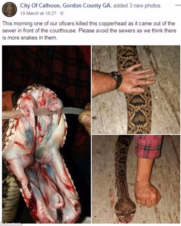 Facebook này được cho là tài khoản của chính quyền thành phố, có tên là City Of Calhoun, Gordon County GA. Trong bài đăng của mình, Facebook này tuyên bố, một nhân viên cảnh sát đã giết chết con trăn khổng lồ khi phát hiện nó đang ẩn nấp dưới cống rãnh và cảnh báo người dân.