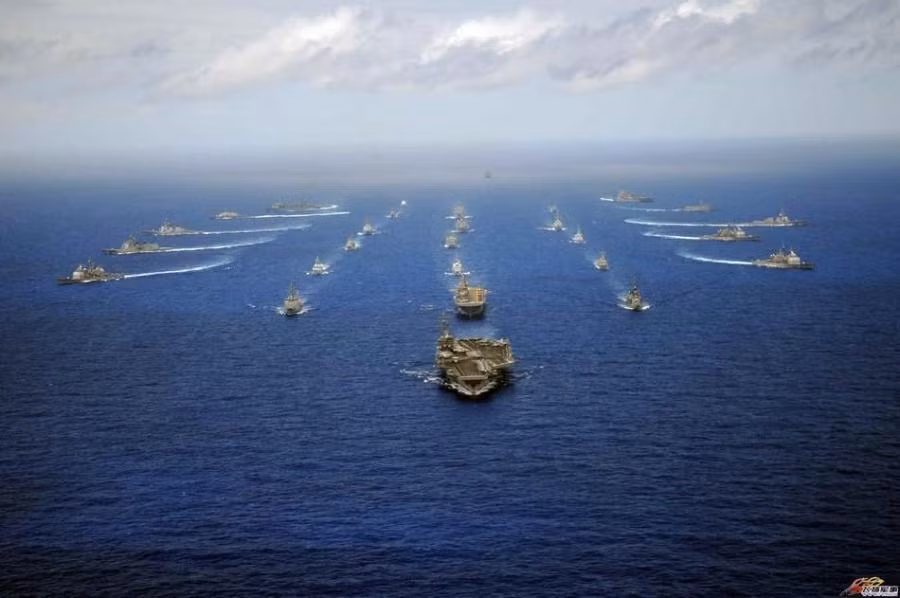 Diễu binh biểu dương sức mạnh hoành tráng của nhóm chiến đấu tàu sân bay, tàu đổ bộ, tàu chiến đấu Aegis Mỹ.
