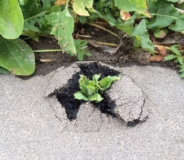 Những mầm cây non mùa xuân đẩy cả lớp nhựa đường để vươn lên.