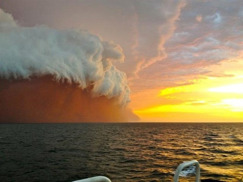 Những đám mây khổng lồ kéo dài nhiều km và trải khắp bầu trời tạo hình như những cơn sóng thần như nuốt chửng thành phố Sydney (Úc).