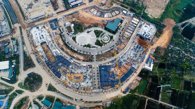 | Khu vực 6 tháp chung cư 38 – 40 tầng của dự án 5000 tỷ này đang được nhà thầu Hòa Bình (đối tác hợp tác chiến lược của Sunshine Group) triển khai thi công thần tốc. |
