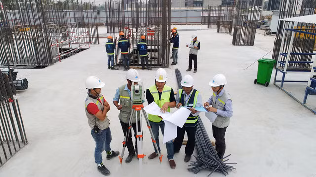 | Đại công trường Sunshine luôn nhộn nhịp với sự góp mặt của hàng trăm kỹ sư và công nhân xây dựng, thi công liên tục 24/7 không quản ngày đêm và thời tiết nắng mưa. |