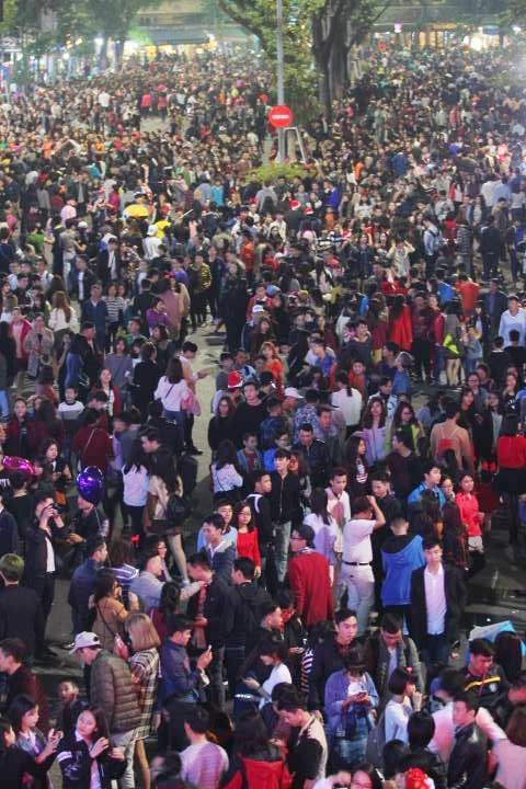 Tại khu phố đi bộ Hồ Gươm tắc nghẽn kinh hoàng do hàng nghìn người đổ về phố đi bộ đón lễ Giáng sinh.