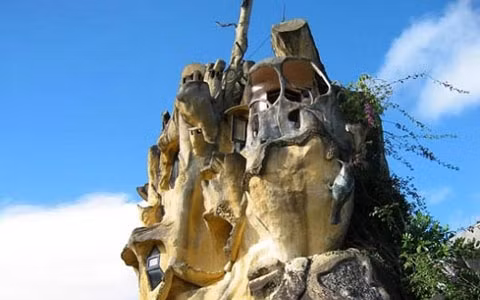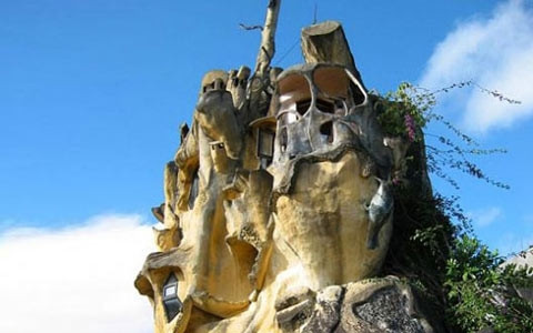 Ngôi nhà ma quái nhất Việt Nam Đó là "Biệt thự Hằng Nga" hay "Ngôi nhà ma quái" do kiến trúc sư người Việt Nam - Đặng Việt Nga thiết kế. Ngôi nhà tọa lạc trên diện tích rộng 1.600 m2 tại số 3 đường Huỳnh Thúc Kháng, thành phố Đà Lạt, từ lâu đã trở thành địa điểm thăm quan ưa thích của du khách trong và ngoài nước. Ngay lối vào biệt thự là tấm mạng nhện khổng lồ, mở ra một lâu đài với khu vườn như trong chuyện cổ tích. Biệt thự Hằng Nga bao gồm khách sạn Hốc Cây và lâu đài Mạng Nhện, đó là 2 thân cây cổ thụ làm bằng bê tông, trong đó có những gian phòng mang tên của các loài vật như kangourou, hổ, gấu, khỉ... và để lên được những "cái hang" này, du khách phải đi qua một cầu thang bao vòng quanh thân cây. Phòng "quả bầu" là phòng cao nhất của biệt thự Hằng Nga và là phòng được khách du lịch quốc tế rất thích. Vì ở trong này có thể đốt củi trong bụng quả bầu, giữ ấm suốt đêm để ngủ mà không cần đắp chăn. Các phòng nghỉ ở đây có đầy đủ tiện nghi cần thiết của một khách sạn sang trọng. Điều đặc biệt ở ngôi biệt thự này là từ trần đến cửa và mái đều thiết kế tuỳ hứng không theo quy luật, thả sức uốn lượn, cửa sổ được cắt theo những hình thù kỳ lạ và đặt ở trong những chỗ lồi lõm của những bức tường hình bầu dục. Từ trên ban công nhìn xuống là khu vườn nhỏ với hoa lá, chim muông. Công trình "Ngôi nhà kỳ dị" của kiến trúc sư Việt Nga cùng với 9 công trình khác trên thế giới được lọt vào Top 10 công trình kỳ dị nhất do tạp chí People's Daily bình chọn năm 2009.