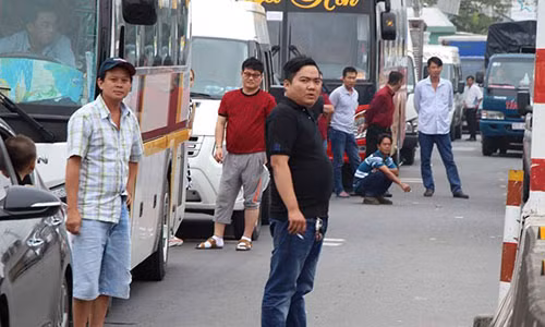| Các tài xế bỏ xuống xe để ngóng xem tình hình giao thông phía trước. |