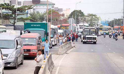 | Kẹt xe nghiêm trọng tại BOT T2 Cần Thơ vào chiều nay. |