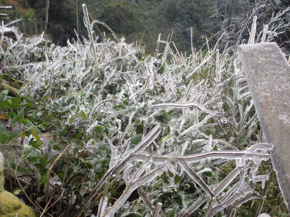 Không khí lạnh tràn về khiến nền nhiệt độ trên thị trấn Tam Đảo (Vĩnh Phúc) xuống thấp từ -1đến -2 độ C, thậm chí xuất hiện băng giá và có tuyết rơi.
