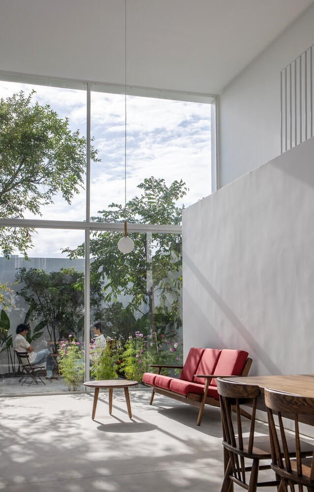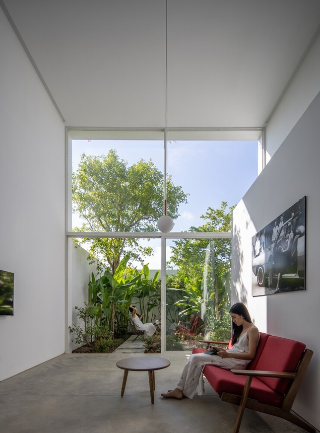Nhờ khung tường kính mà không gian trong nhà cũng được nắng gió "ghé chơi".