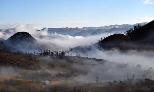 Vượt những qua cung đường ngoằn ngoèo diệu vợi bám vào triền đá của vùng biên viễn Đồng Văn (Hà Giang), càng lên cao càng dễ được tận hưởng khung cảnh biển mây bồng bềnh bao phủ.