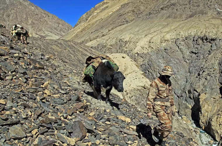 Trên dãy núi Pamir cao hơn 4.700 m so với mực nước biển, lính biên phòng Khunjerab Pass bảo vệ tuyến biên giới giữa Trung Quốc và Pakistan thường sử dụng bò Tây Tạng để tuần tra.