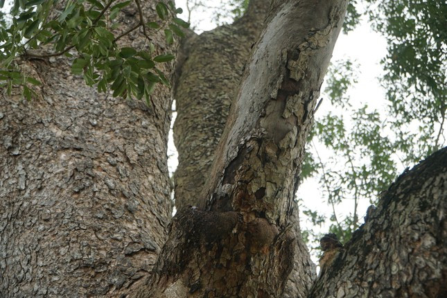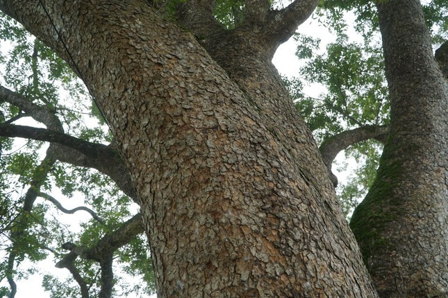 Thân cây xà cừ xù xì, rêu phong phủ kín.