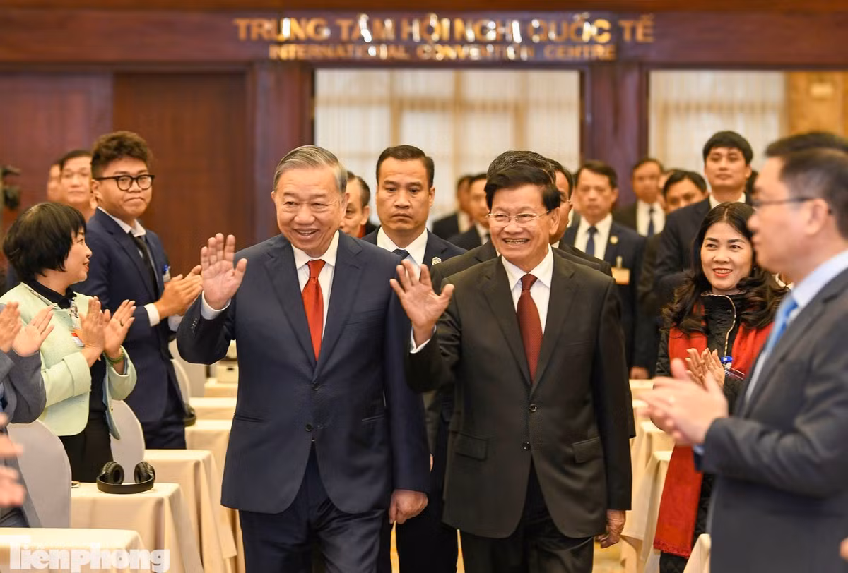 Trong bầu không khí phấn khởi, hoà cùng với niềm vui chung của nhân dân hai nước trước thành công rất tốt đẹp của Đại hội lần thứ XIV của Đảng Cộng sản Việt Nam và Đại hội lần thứ XII của Đảng Nhân dân cách mạng (NDCM) Lào vừa qua, Tổng Bí thư Tô Lâm và Tổng Bí thư, Chủ tịch nước Lào Thongloun Sisoulith thông báo cho nhau về tình hình mỗi Đảng, mỗi nước và những kết quả nổi bật của Đại hội Đảng mỗi nước.