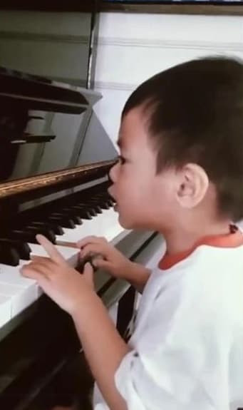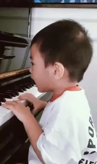 Mới đây, trên trang cá nhân của mình, Tăng Thanh Hà đã đăng tải khoảnh khắc bé Mason - con trai út của cô, thu hút sự quan tâm của nhiều đồng nghiệp, khán giả. Trong clip, nhóc tì mới 3 tuổi vừa ngồi đàn piano vừa hát líu lo Cháu yêu bà. Trước độ đáng yêu của con trai, nữ diễn viên chỉ biết thốt lên: "Mẹ chịu không nổi". Nàng ngọc nữ màn ảnh Việt còn nhờ nhạc sĩ Đức Trí "chấm điểm" cho màn thể hiện của con trai út.
