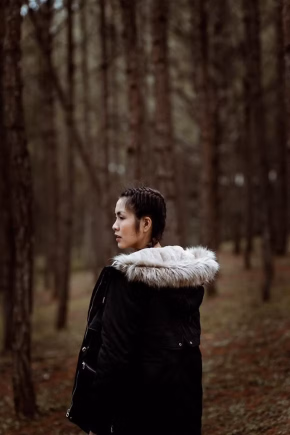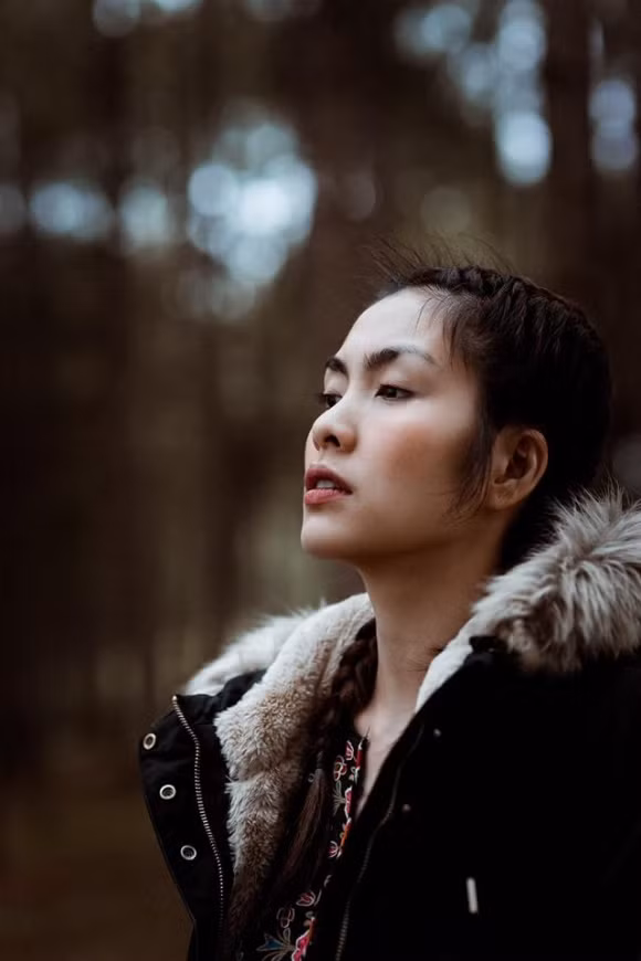 Tăng Thanh Hà khoe nhan sắc xinh đẹp giữa rừng cây.
