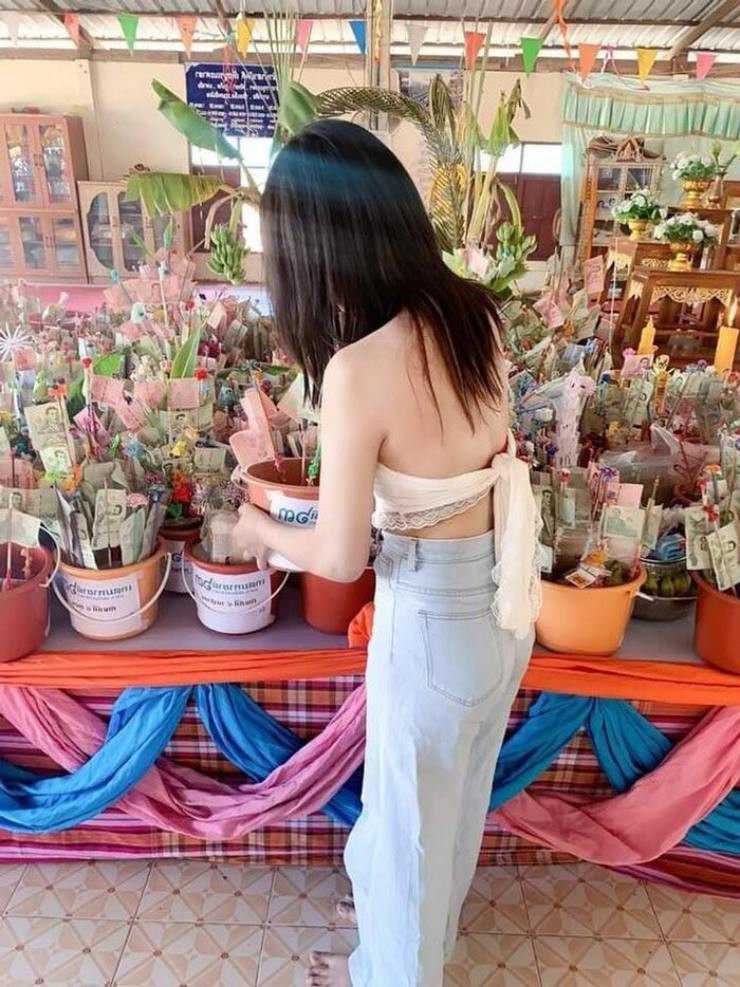 Bên cạnh đó, trang phục của các bạn trẻ khi tới nơi linh thiêng như chùa, đền,... cũng gây xôn xao không kém.