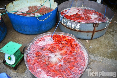 Nhiều người ở tỉnh khác cũng về chợ cá Yên Sở để mua cá chép về bán lẻ.