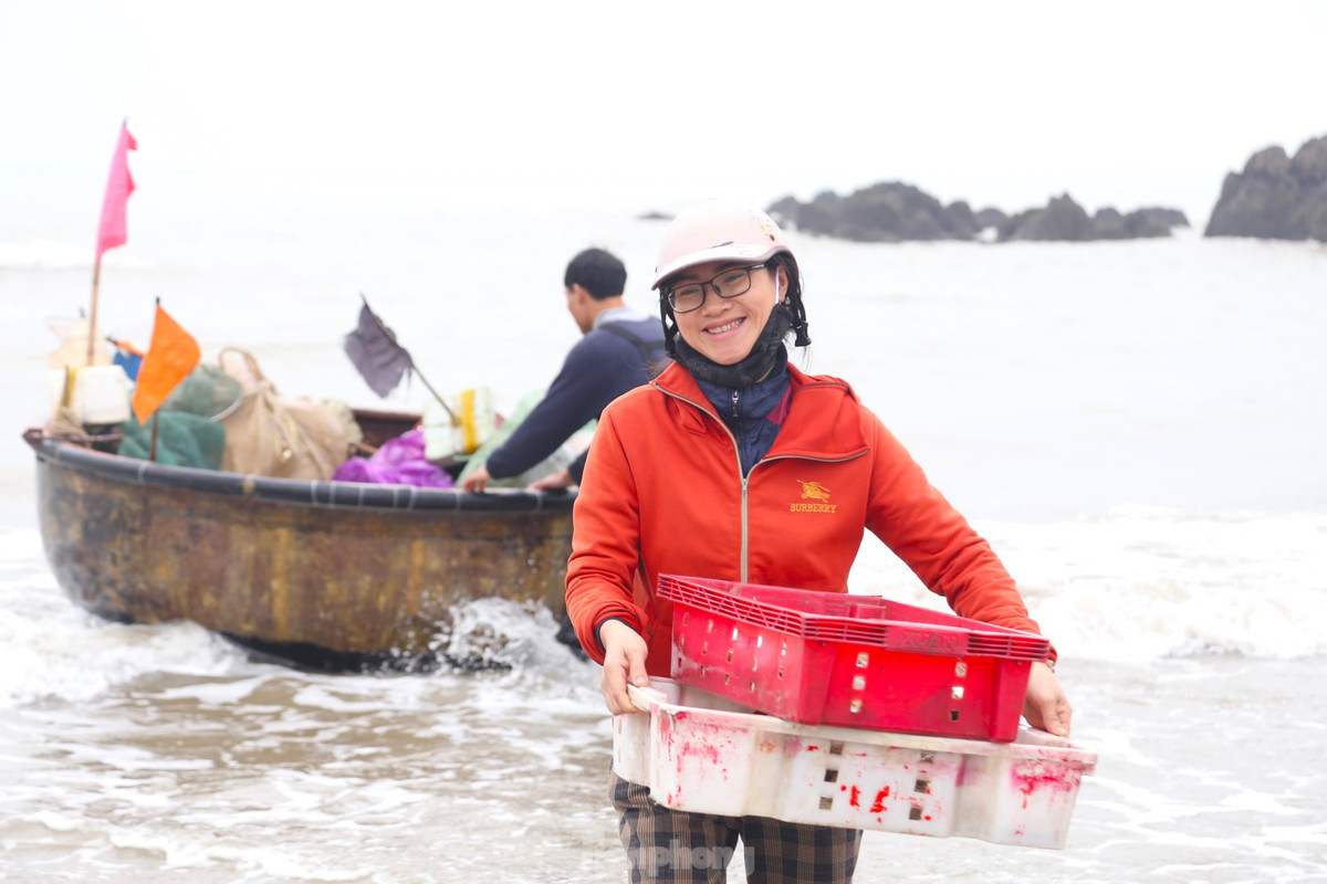 Khoảng hơn 6h sáng, dọc bãi biển Cửa Lò (Nghệ An), những chiếc thuyền thúng của ngư dân trở về mang theo đầy ắp cá, tôm. Trên bờ, nhộn nhịp người dân và du khách đã chờ sẵn để mua hàng.
